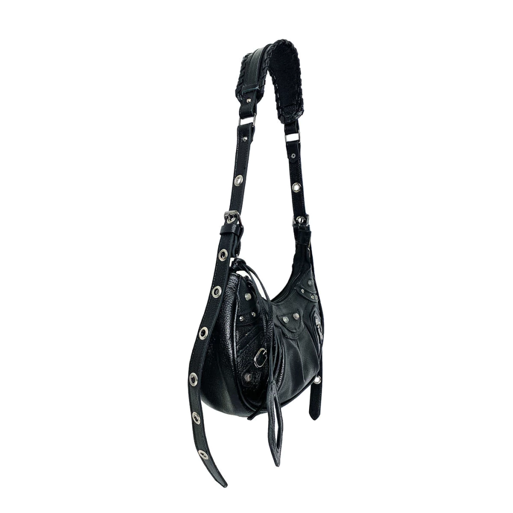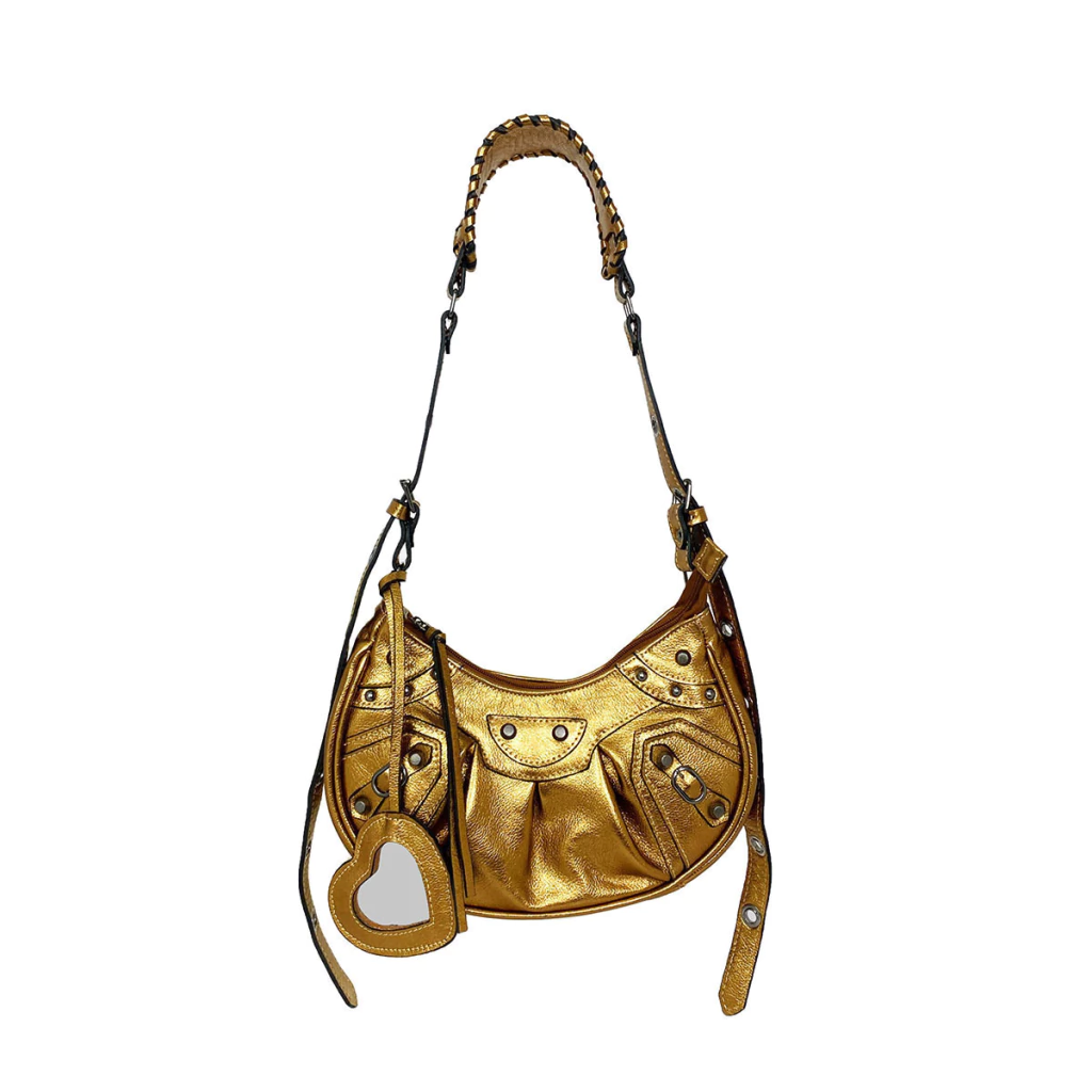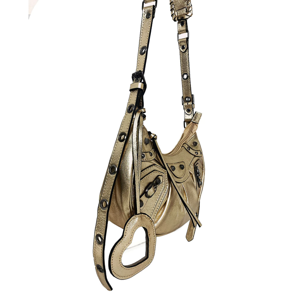 Bolsa cheia de metais que trazem o charme e estilo, feita em couro