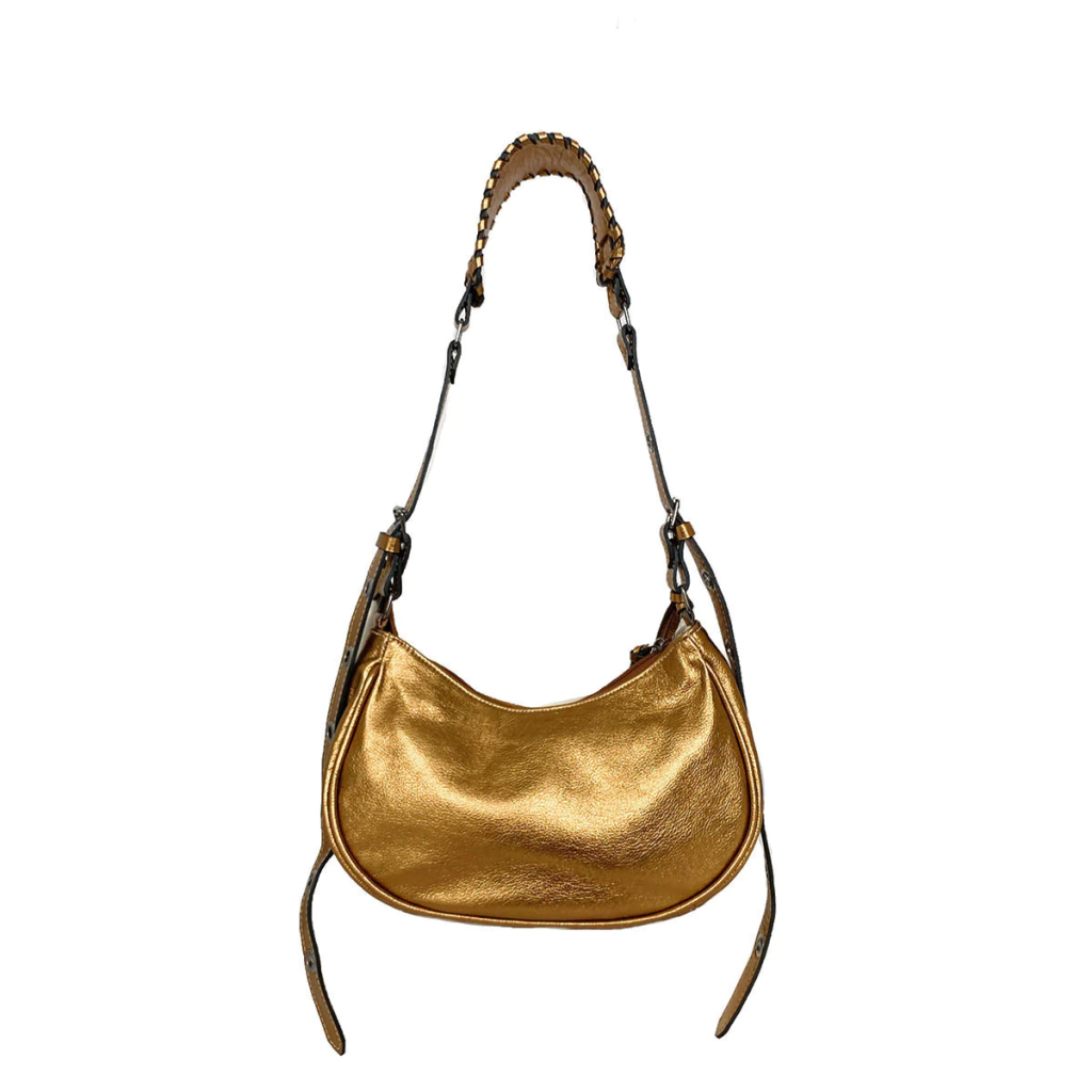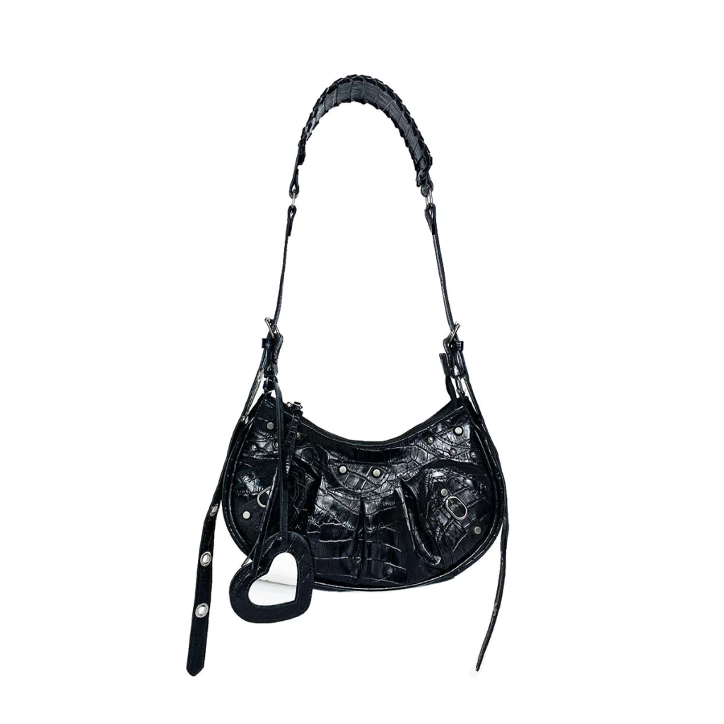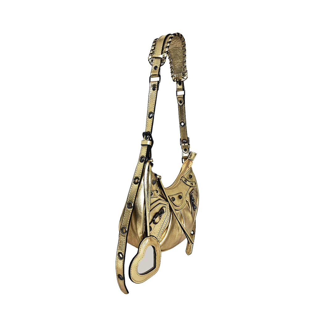 Bolsa cheia de metais que trazem o charme e estilo, feita em couro
