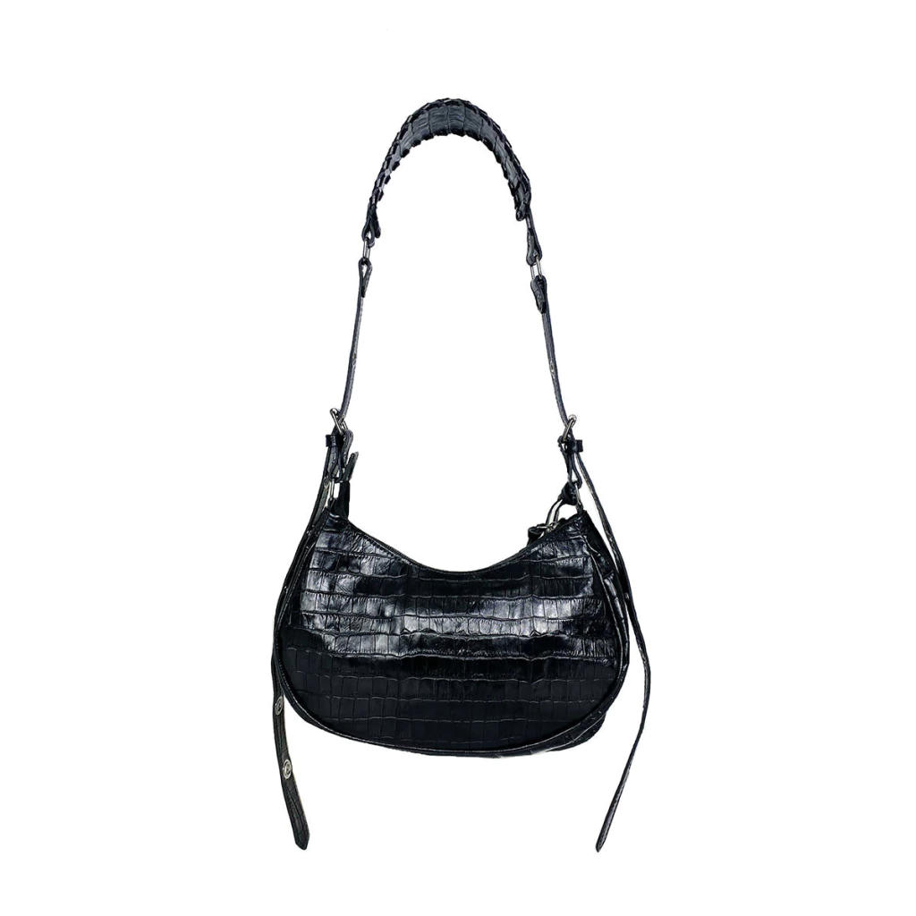 Bolsa 100% couro, modelo baguete com alça transversal ajustável