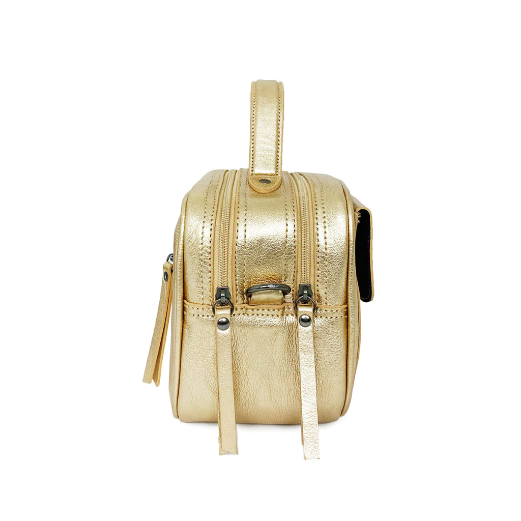 Bolsa estruturada feita em couro macio, possui duas alças uma de mão e outra transversal removível
