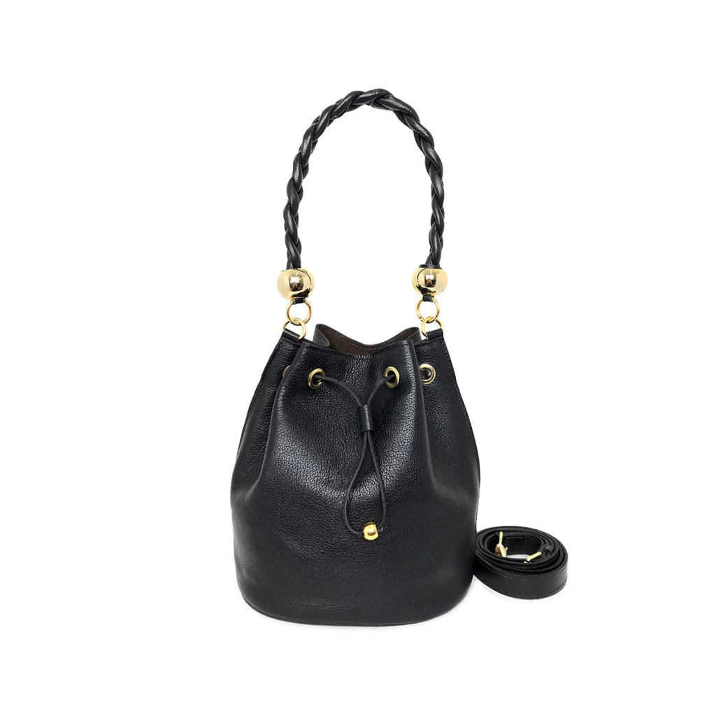 Nossa bolsa saquinho feita em couro possui design estiloso, forro em suede cor neutra