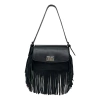 Possui duas alças, uma para o ombro e outra transversal e uma franja de camurça que trás todo o diferencial para a peça