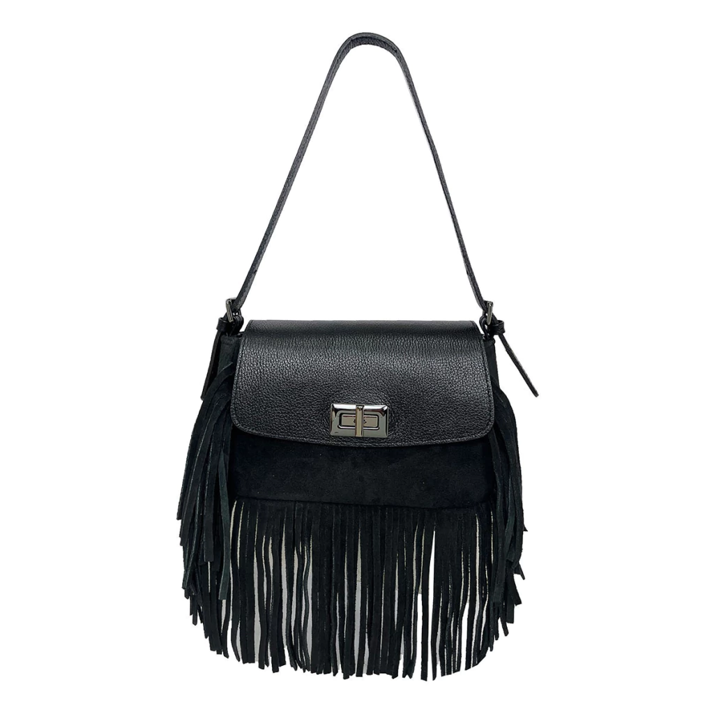 Nossa bolsa Camurça com franjas é feita em couro camurça macio, modelo de tamanho médio para os seus pertences essenciais, possui um bolso interno de couro,